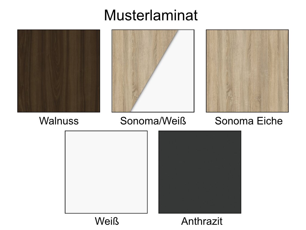 Farblaminat: | WEISS, WALNUSS, EICHE SONOMA, ANTHRAZIT |