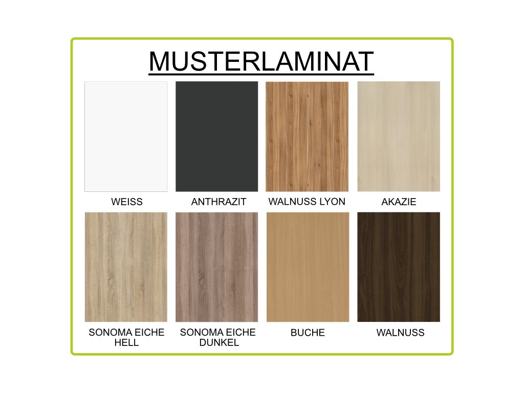 | Farblaminat: | BUCHE, WEISS, WALNUSS, WALNUSS LYON, EICHE SONOMA, ANTHRAZIT, AKAZIE |